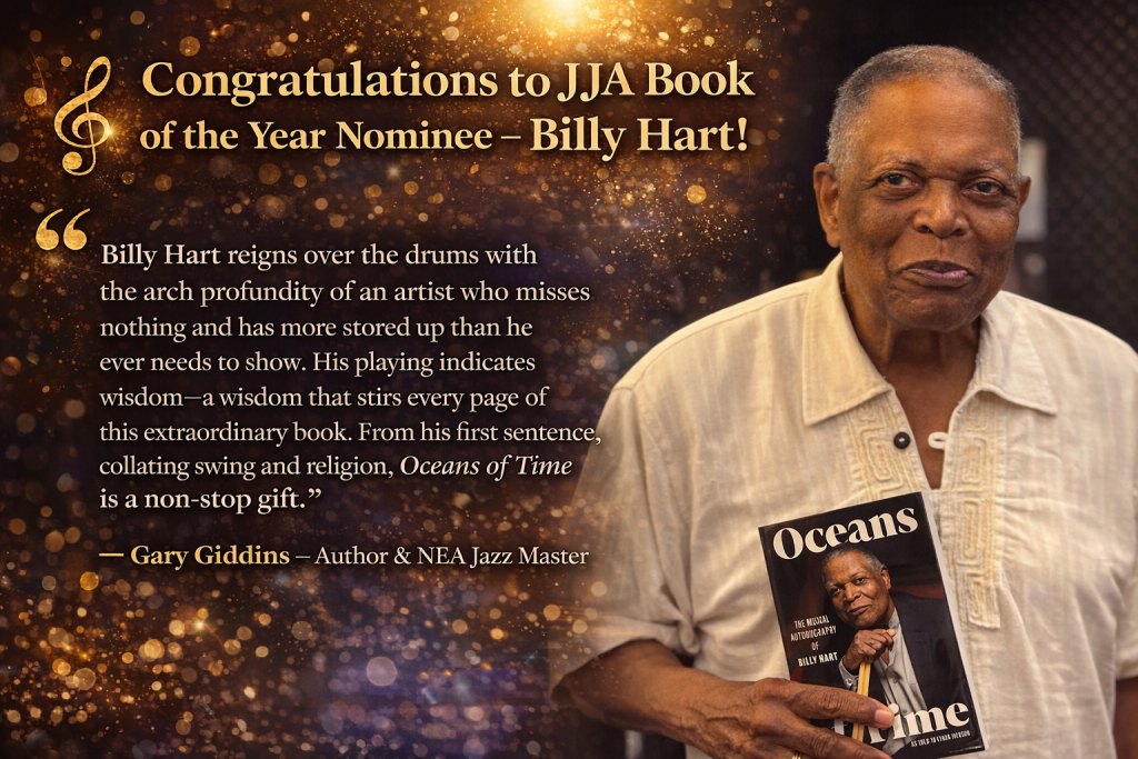 Cymbal Press is thrilled to learn that the Jazz Journalists Association has named Oceans of Time – The Musical Autobiography by Billy Hart (with Ethan Iverson) as a finalist for best biographical book of the year in the biography/autobiography category! This exceptional honor follows Oceans of Time being named one of NPR’s Best Books of 2025!